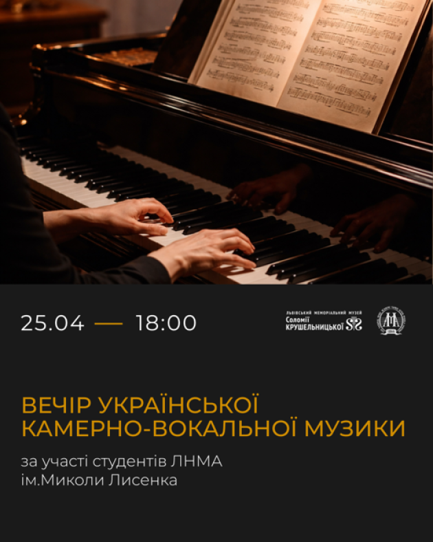 Музей Соломії Крушельницької запрошує на вечір української камерно-вокальної музики у виконанні студентів Львівської національної музичної академії імені Миколи Лисенка.