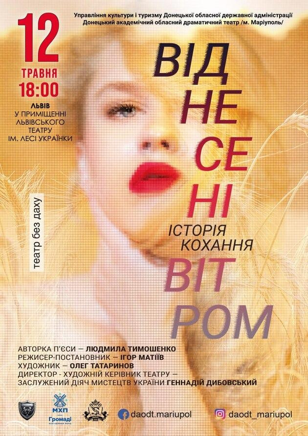 Незламний театр Маріуполя, що вистояв і не втратив духу, представляє сучасну постановку культової історії "Віднесені вітром"( за п'єсою сучасної української драматургині Людмили Тимошенко, що є інтерпретацією всесвітньо відомого роману Маргарет Мітчелл).