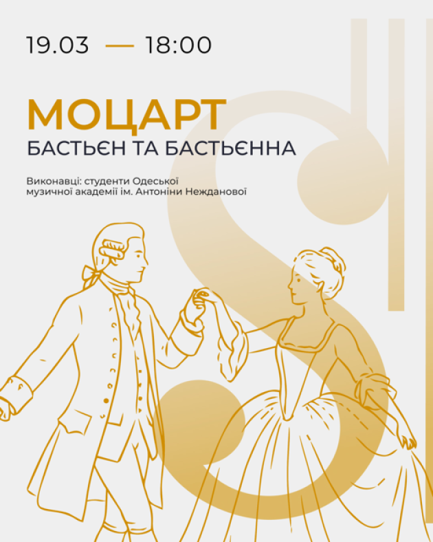 Музей Соломії Крушельницької запрошує на одноактну оперу “Бастьєн та Бастьєнна” Вольфганга Амадея Моцарта у виконанні студентів Одеської національної музичної академії імені Антоніни Нежданової