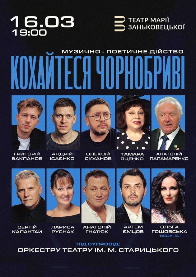 У березні глядачів чекає особлива мистецька подія — музично-поетичне дійство “Кохайтеся, чорнобриві”, яке поєднує в собі живе слово української класики, театральну емоцію та величне звучання оркестру.