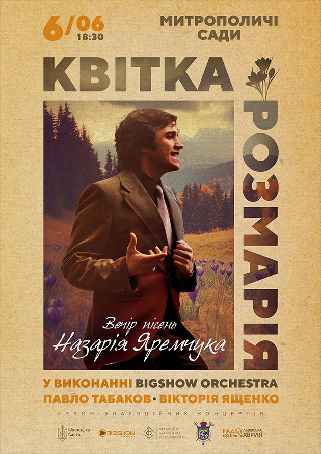 Цього року минає 31 рік відтоді, як не стало легенди української естради Назарія Яремчука. Та Його пісня й досі живе в наших серцях. Концерт «Квітка Розмарія» — це вечір пам’яті та вдячності Людині, чия творчість і голос стали символами епохи.