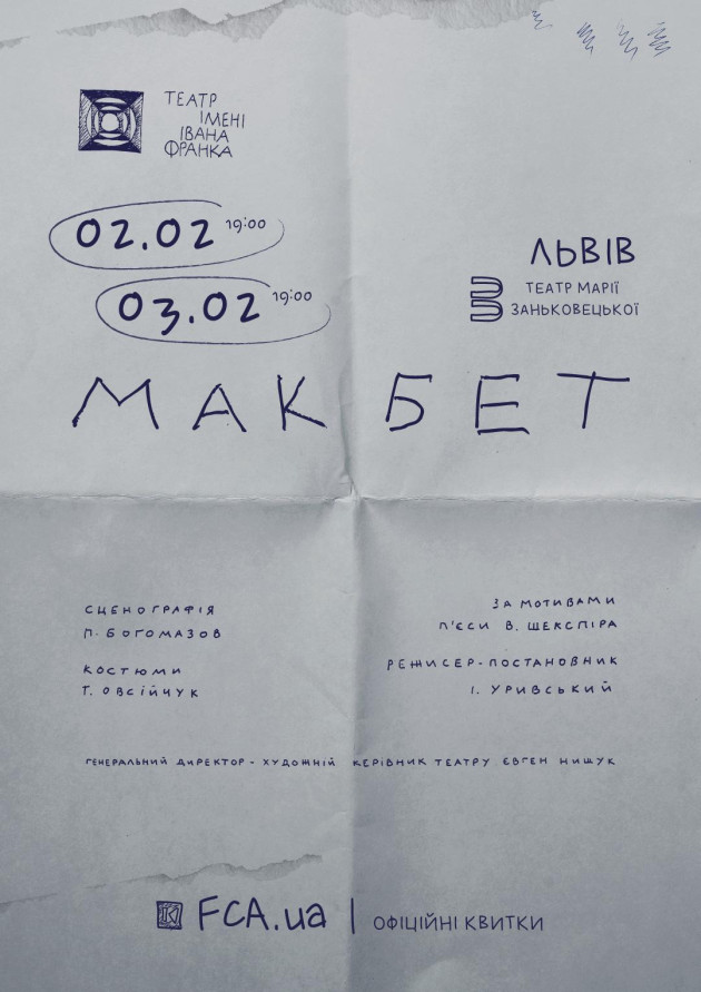 Театр Франка представляє масштабну постановку МАКБЕТ режисера Івана Уривського на сцені Театру Марії Заньковецької