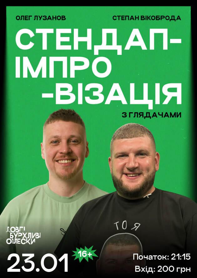 Стендап-імпровізація з Олегом Лузановим та Степаном Вікобродою — це вечір без заготовок і домашніх жартів. Усе, що відбувається на сцені, народжується тут і зараз: теми підкидає зал, коміки реагують миттєво, а кожна хвилина може піти в абсолютно несподіваний бік. Це не просто шоу, а жива розмова з тими самими друзями, які вміють смішно з будь-якої ситуації — і саме за це їх неможливо передбачити.