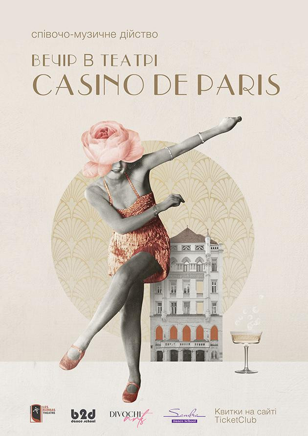 Запрошуємо провести незабутній, вишуканий вечір в театрі «Casino de Paris» в елегантній атмосфері 20-30-х років із музичною програмою, «дансингом» та історичним екскурсом за лаштунки колишнього театру-вар’єте.