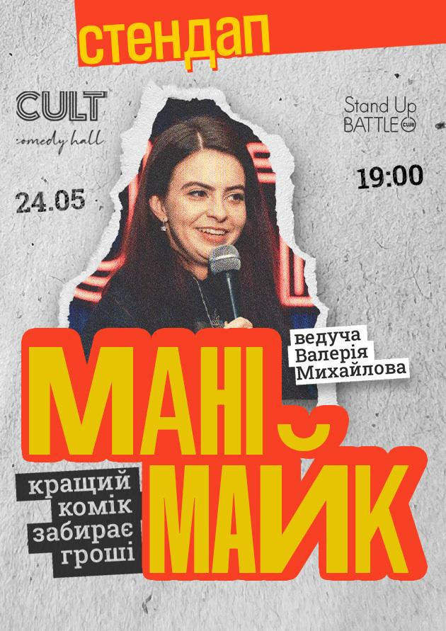 МаніМайк - це вечір, де коміки виходять на сцену зі своїми найсильнішими жартами та історіями. Кожен змагається за грошовий приз і титул «коміка тижня», а глядачі стають головними суддями вечора та вирішують, хто переможе.