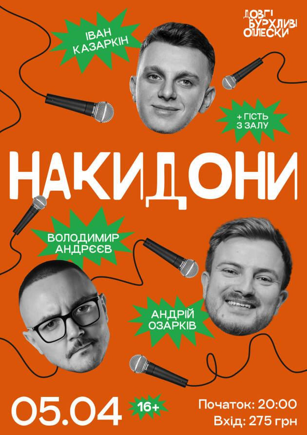 Шоу "Накидони" - імпровізаційний формат, в якому коміки знайомляться з глядачами, обговорюють новини і роблять свої заготовки смішнішими! Глядачі можуть пропонувати свої новини і весело проводити вечір в теплій атмосфері!