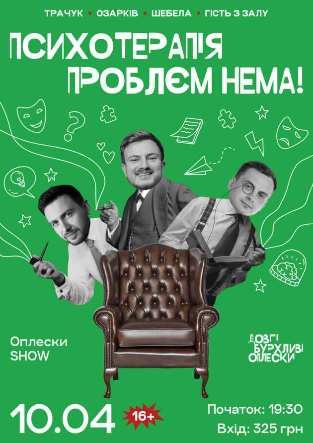 На сцені: професійні коміки Назар Шебела та Андрій Озарків та професійний гештальт-терапевт Роман Трачук.