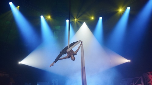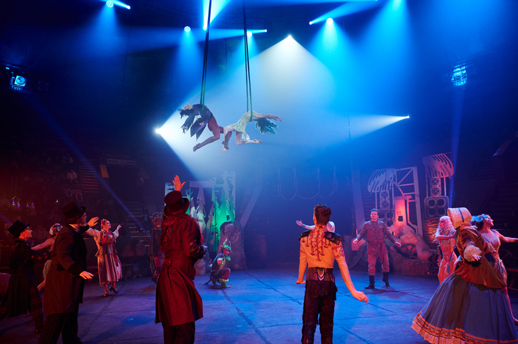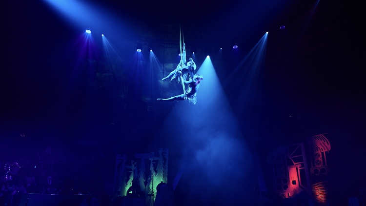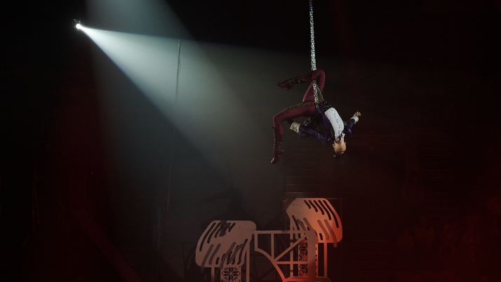 - повітряні полотна й трапеції, де герої літають над глядачами;