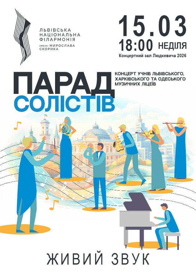 15 березня на сцені Львівської національної філармонії зустрінуться ті, хто формуватиме музичний ландшафт країни в найближчі десятиліття. Учні трьох музичних ліцеїв — львівського, харківського та одеського — зіграють велику спільну програму.