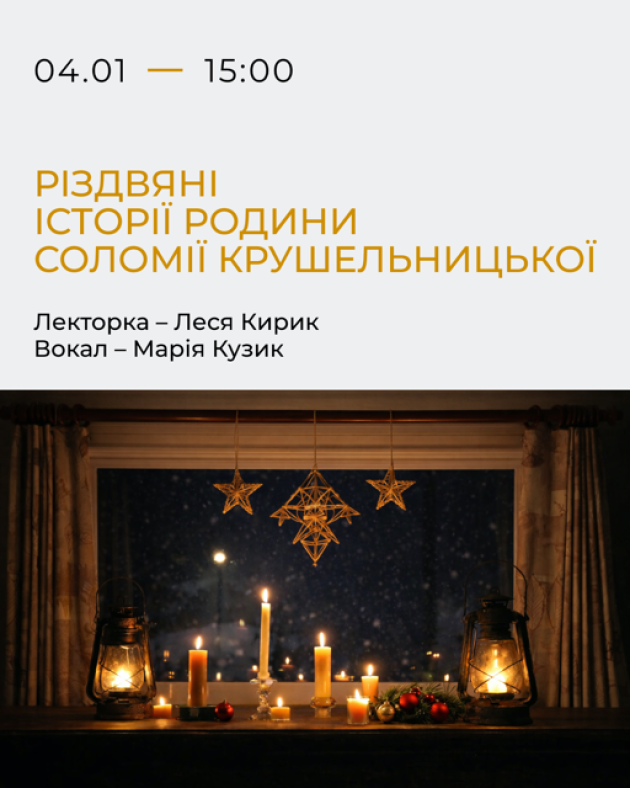 Під час події спогадами про різдвяні традиції та дитячі історії 1940–1950-х років ХХ століття поділяться представники родини Крушельницьких — у відеозаписах. Багатолітня кураторка Зібрань родини Крушельницьких-Савчинських у Музеї Олександра Кирик розповість про святкування на парохії отця Амвросія Крушельницького в селі Біла, родинні приготування до Святої вечері, улюблені різдвяні страви Соломії, колядки й щедрівки, які співали в родині та які збереглися до наших днів.