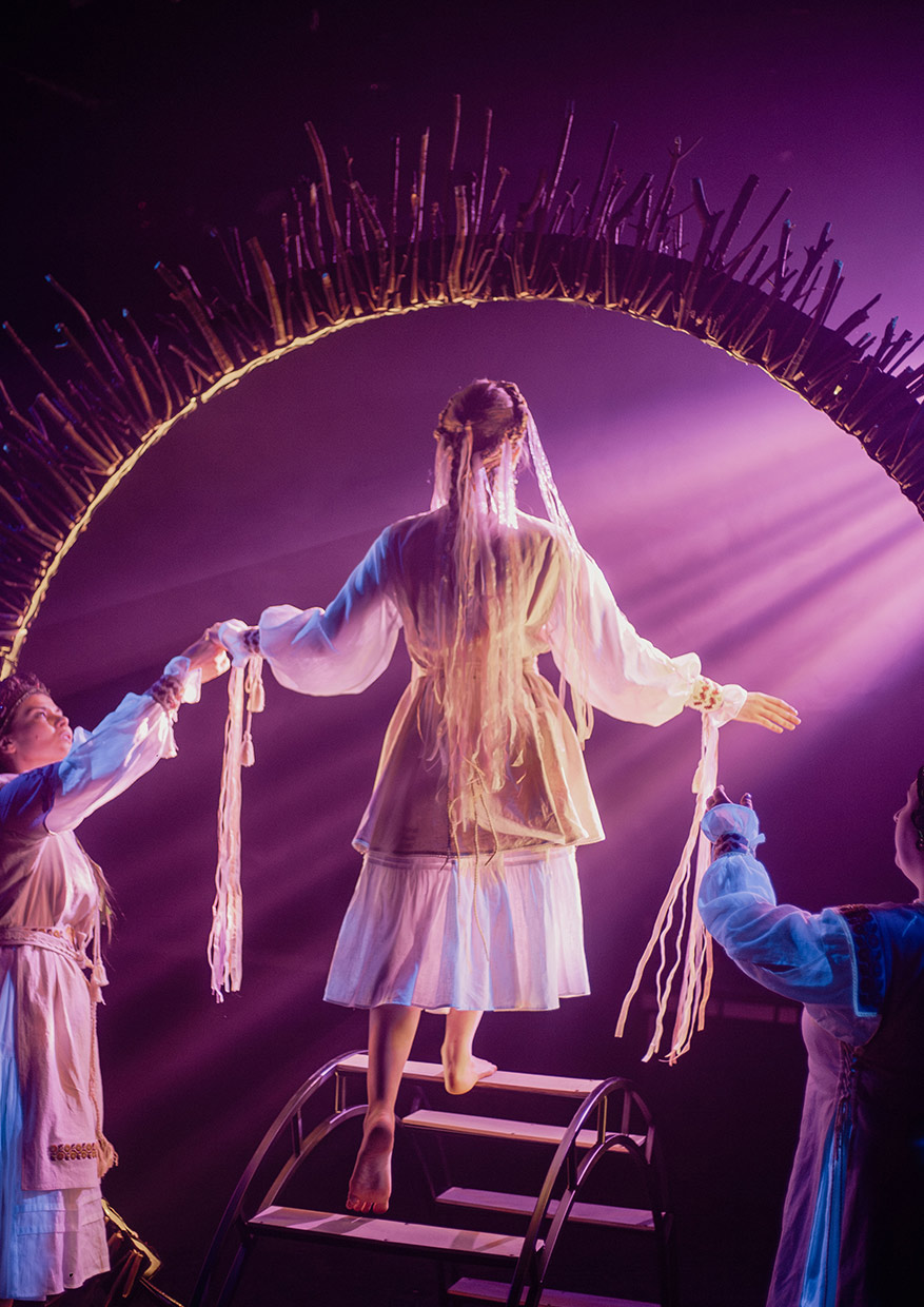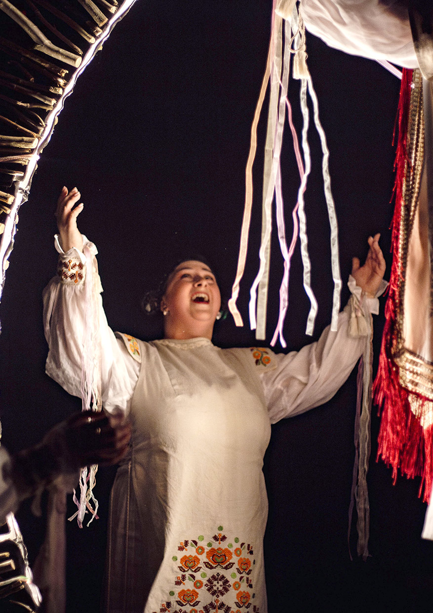 Давні тексти, народні мотиви та сценічна дія створюють емоційне перевтілення, що втілює сили жіночого роду, природи та життя.
