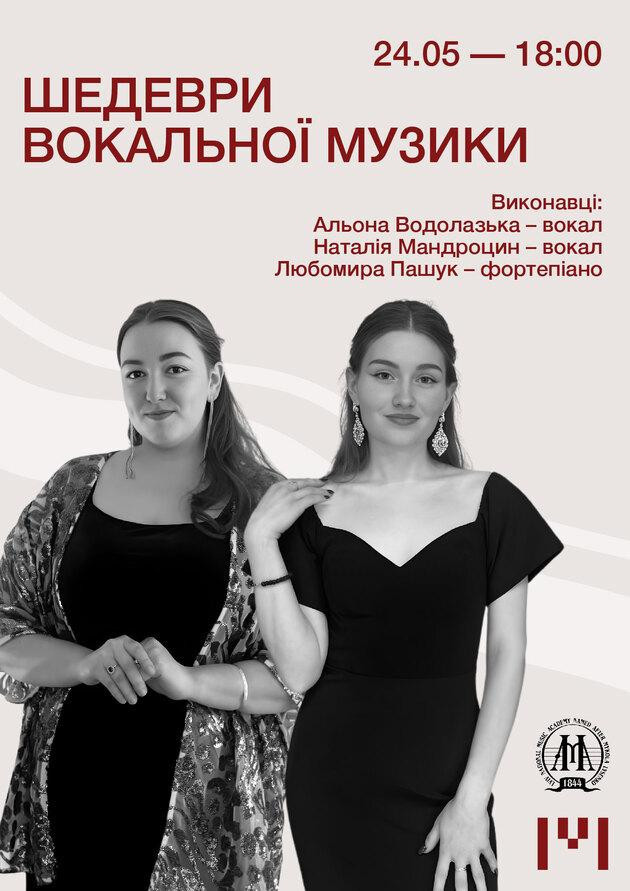 На сцені – талановиті студенти Львівської національної музичної академії імені Миколи Лисенка (клас викладачки Любові Качали): Альона Водолазька та Наталія Мандроцин. Фортепіанний супровід – прекрасної Любомири Пашук.
