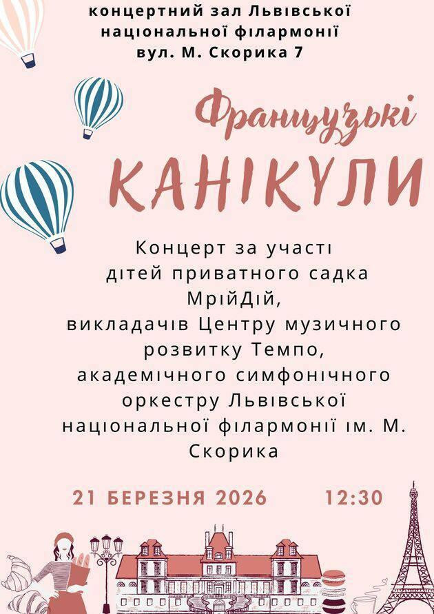 Цього разу ми поринемо у прекрасний і романтичний світ Франції — країни, чия атмосфера вміє зачаровувати з першої ноти. Разом із симфонічним оркестром та дітками садочку «МрійДій» ми передамо особливий шарм французької музичної культури, наповнимо простір мелодіями шансону й уявним ароматом свіжих круасанів.