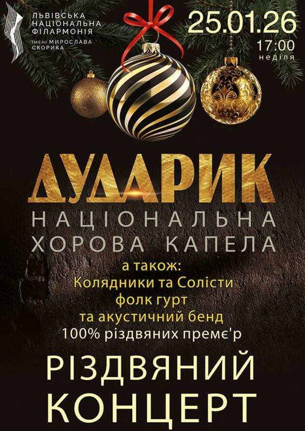Різдвяні концерти хорової капели «Дударик» — це вир традиційної і професійної різдвяної музики ретельно укладених у феєричну різдвяну хорову містерію, що розгортається перед глядачем і буяє масою несподіваних мелодій, гармоній, настроїв і емоцій. Це квартет солістів, октет, чоловічий хор, хор хлопчиків, оркестр традиційних інструментів, колядники і вінчувальники — своєрідний екстракт Новорічних і Різдвяних традицій і ритуалів, зібраних із цілої України.