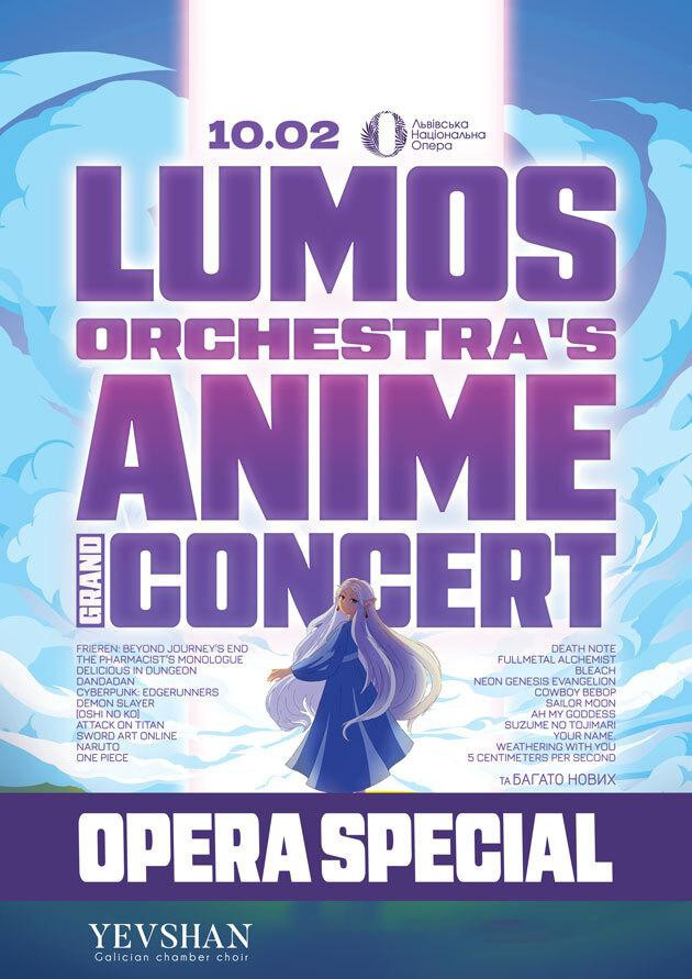 Концерт саундтреков аниме в опере? Легко, если речь идет о LUMOS Orchestra. Вместе с хором “Євшан” музыканты устроят для зрителей настоящую музыкальную феерию. Симфонический оркестр, хор, солисты и рок-бэнд сделают все возможное и невозможное, чтобы легендарные саундтреки звучали так же, как в аниме.