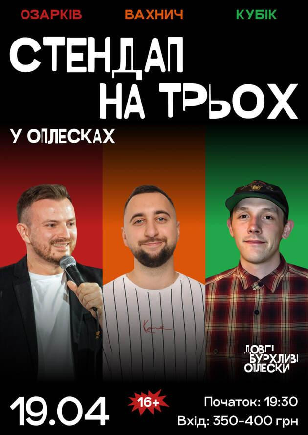 Троє коміків влаштують для вас вечір крутого стендапу! Зовсім різний гумор, але ціль одна – будемо багато сміятися, щоб створити для вас ламповий настрій! Якщо ви любите українську стендап-комедію та смішні історії, то вам точно не можна пропустити цю подію!