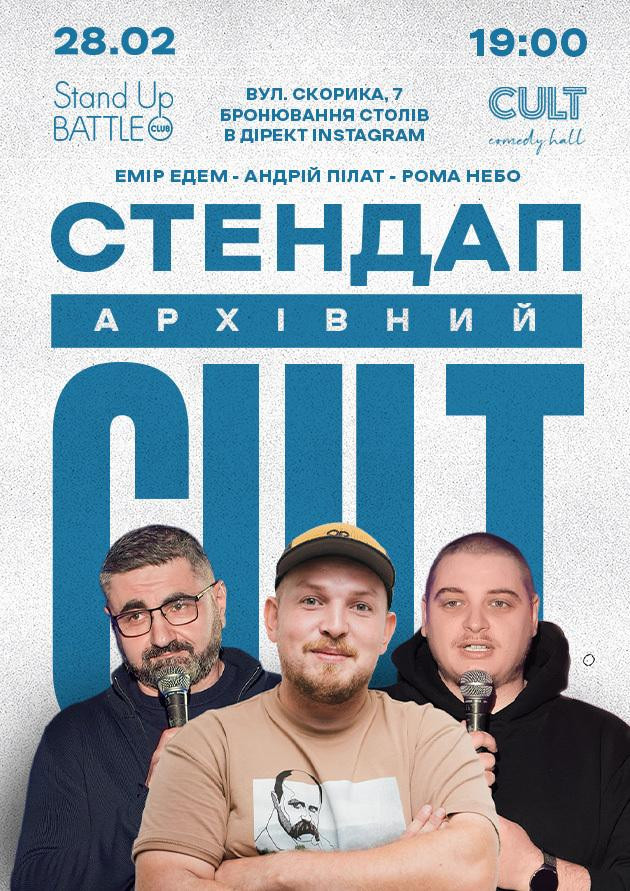 АРХІВНИЙ СТЕНДАП в Cult Comedy Hall — це коли жарти перевірені десятками виступів, історії, які хочеться слухати ще раз, матеріал відточений до деталей і без випадковостей. Стендап, у якому впевнені на всі 100%