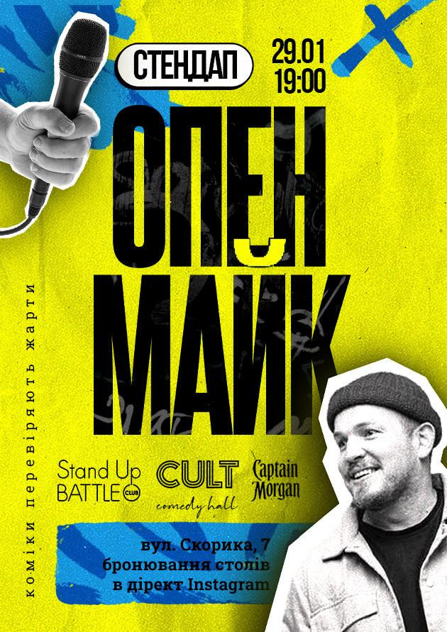 Це вечір, де коміки виходять на сцену зі своїми жартами та тестують матеріал. Він отримує перші реакції залу й формується для майбутніх виступів. На ОПЕНМАЙК може вийти кожен охочий - спробувати себе на сцені та показати свій стендап.