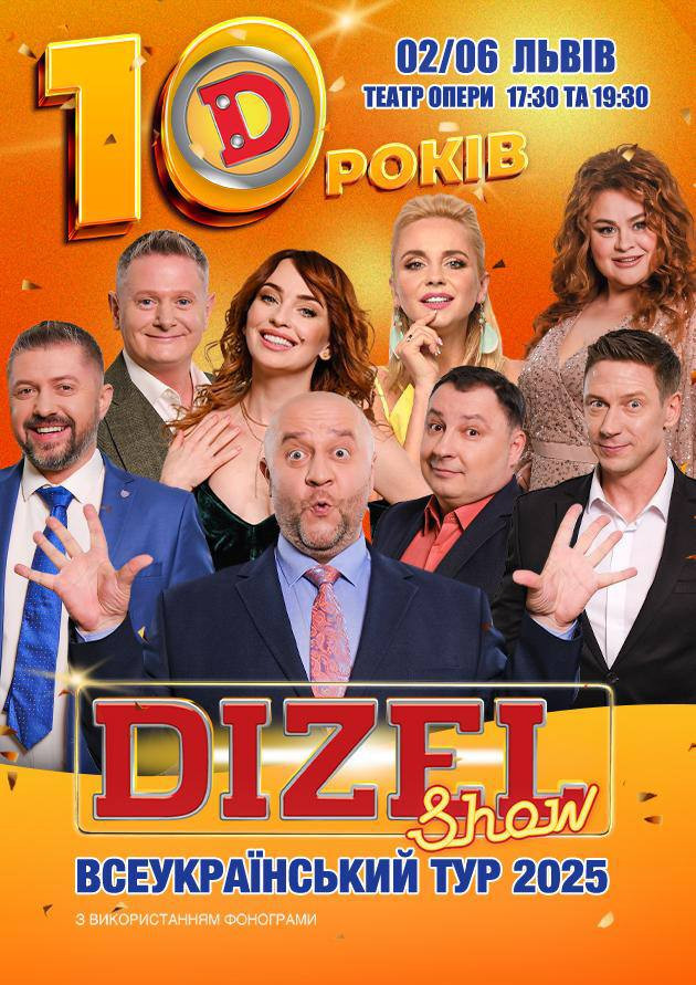 В період з 29 травня по 3 червня 2025 року «Дизель шоу» завітає до Трускавця, Ужгорода, Тернополя, Чернівців, Львова та Івано-Франківська! На концертах ви побачите найкращі номери, написані ексклюзивно до ювілею! Зробимо День народження «Дизель Шоу» по-справжньому незабутнім — відсвяткуємо його разом у вашому місті!