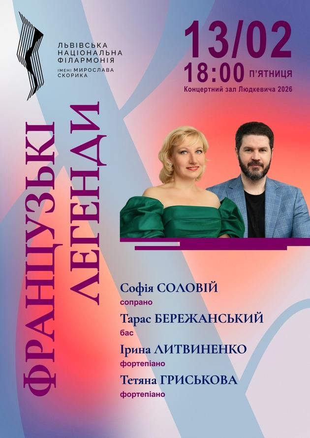 В особливий вечір, овіяний настроєм Дня Святого Валентина затишне фоє філармонії стане майданчиком, на якому звучатимуть арії тонких ліриків та запальних драматиків — французьких композиторів Жака Ібера, Жуля Массне, Шарля Гуно та інших. У переддень свята всіх закоханих уперше від початку повномасштабного вторгнення у філармонії виступить легендарний бас, що приєднався до лав Сил оборони, — Тарас Бережанський. Шарм романтики камерної музики з ним на сцені розділить його дружина та піаністка – Ірина Литвиненко.