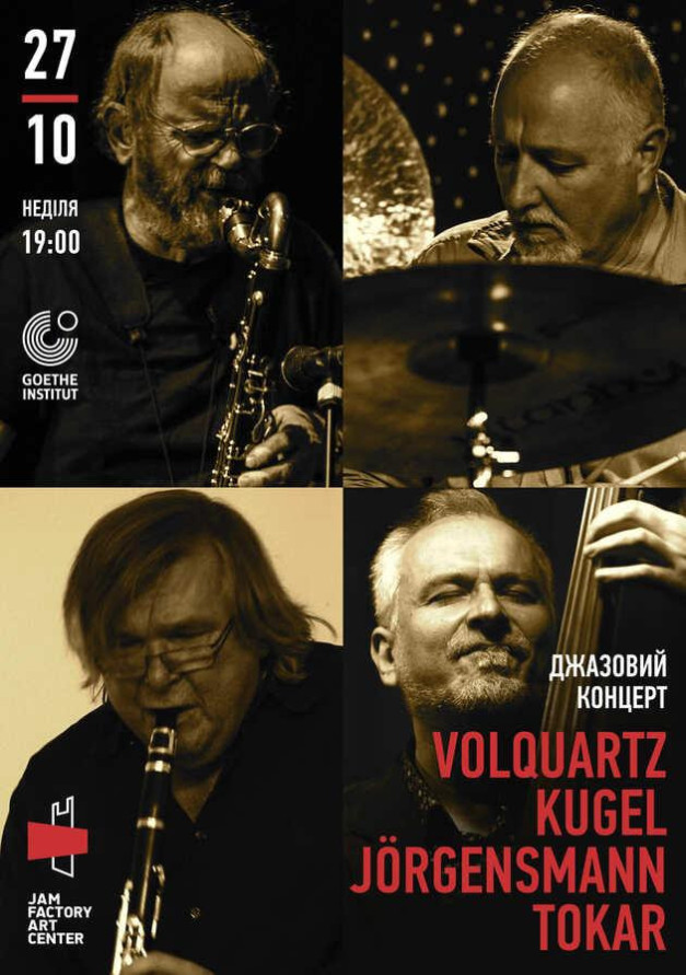 Концерт від міжнародних зірок джазової сцени JÖRGENSMANN - VOLQUARTZ - TOKAR - KUGEL із дебютом в Україні в такому складі!