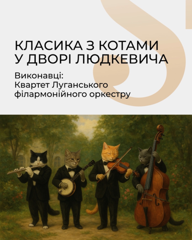 Осінній теплий день у дворику Музею Станіслава Людкевича, звуки струнного квартету — і поруч ваші улюблені котики. Це зустріч, де класика звучить по-новому — у товаристві тих, хто завжди дарує нам тепло й радість.