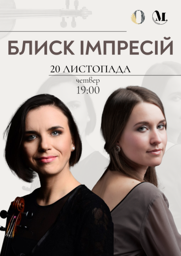 Концерт «Блиск імпресій» поєднує витончену кольорову палітру імпресіонізму з пристрасними іспанськими мотивами — від барокового шарму Рамо до поетичної майстерності Равеля та фольклорних образів де Фальї й Гранадоса. Програма побудована як подорож світом звукових відблисків і контрастів: камерний діалог скрипки й фортепіано змінюється сольними портретами, кожен твір відкриває нову грань настрою — від делікатної інтимності до блискучої віртуозності. Виконавці — відома львівська скрипалька Лідія Футорська та піаністка Маргарита Головко — поєднують високу техніку й глибоку музичну культуру, пропонуючи інтерпретації, що підкреслюють колорит, вишукану ритміку та народну енергетику творів.