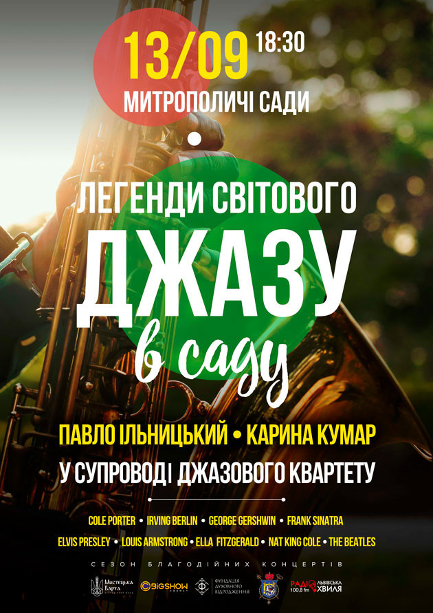 Світ витончених джазових мелодій відкриється по-новому в особливій програмі "Легенди світового джазу", що відбудеться 15 вересня у Митрополичих садах.