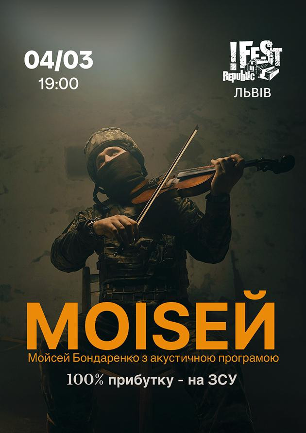 Вже 4 березня, запрошуємо на особливий благодійний концерт на !FESTrepublic. MOISEЙ —український музикант та молодший сержант ЗСУ.