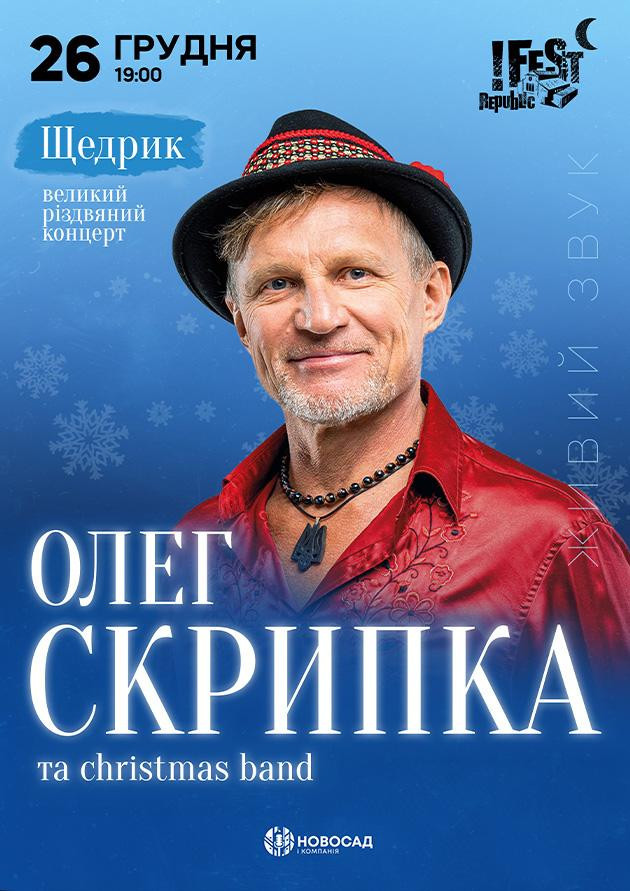 Олег Скрипка та Christmas BandДрузі, запрошую вас на особливе різдвяне дійство, яке наповнить серце світлом і радістю! Разом із Christmas Band ми підготували чарівну програму «Щедрик», де збереться вся святкова енергія Українського Різдва: Маланки та Коляди. На вас чекає:- Легендарний український «Щедрик» у живому виконанні - Колядки та щедрівки, з усіх куточків країни. - Атмосфера справжнього Українського Різдва з відчуттям єдності та любові. - Теплі побажання, пісні на добро, на радість і на перемогу! У цей непростий час ми як ніколи потребуємо любові, сили духу та єдності. Давайте разом заспіваємо так, щоб український «Щедрик» лунав гучно по всій землі — як символ відродження і нової сильної України! Купуйте квитки за найкращою ціною!Приходьте колядувати з друзями та родиною разом з Олегом Скрипкою!