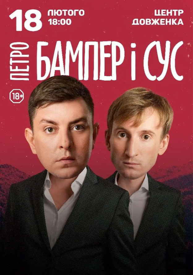 18 лютого 2025 у Центрі Довженка відбудеться виступ гумористичного дуету БАМПЕР і СУС у Львові.
