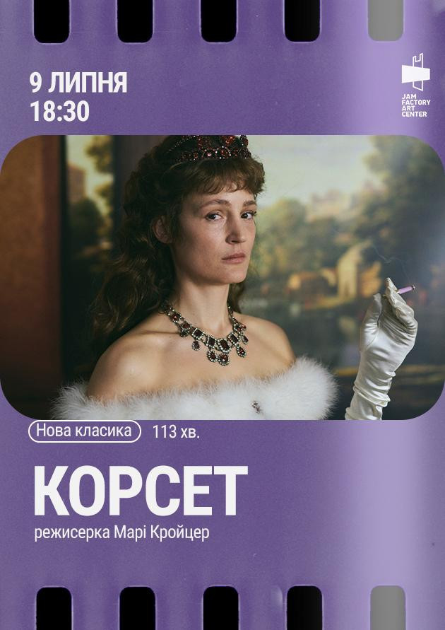 9 липня у Jam Factory Art Center відбудеться перегляд фільму «Корсет» / «Corsage» —феміністичної драми, яка кидає виклик глянцевим уявленням про імператриць.