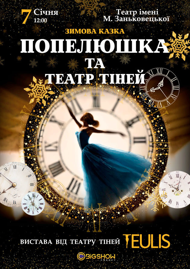 Поєднання жанру Театру тіней та 3-D технологій, авторська музика, створена композиторами найвищого рівня, роблять стару історію новою та унікальною. Незвичайний і вражаючий театр, що вразив талантом та майстерністю глядачів усього світу, театр, який змусив Європу, Америку та Азію, затримавши подих, стежити за своїми уявленнями, спеціально для дітей України на новорічні свята представляє нову дитячу виставу «Попелюшка та ТЕАТР ТІНЕЙ» Ви хочете побачити, як створюються справжні чудеса: побачити як феї шиють Попелюшці справжнє 3Dсукня, опинитися в середині чарівного годинника за хвилину до півночі? Тоді поспішіть на наше шоу! Яскрава новорічна прем'єра від Театру Тіней TEULIS – «Попелюшка та Театр Тіней»